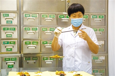 随着梅雨季的到来,空气越来越潮湿,市民常有食欲不振、精神萎靡、嗜睡等症状,白沙路卫生院的中医孙医生推荐你来点健脾祛湿、生津止渴的乌梅汤。图为中医正在药柜前为居民配制祛湿健脾的乌梅汤。 ■摄影 全媒体记者 黄凯 通讯员 利平