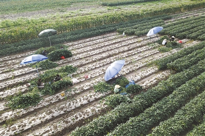眼下正值毛豆最佳采收期,在周巷镇一处农田,数名农民在一把把遮阳伞下采摘毛豆。农人勤劳的身影,绘就夏日丰收图。 ■摄影 全媒体记者 王烨江