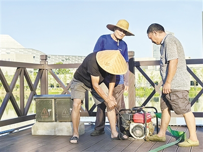 慈晓客户端慈圈“圈友”百灵鸟(吕建月):致敬高温下的劳动者。摄于明月湖沙滩。