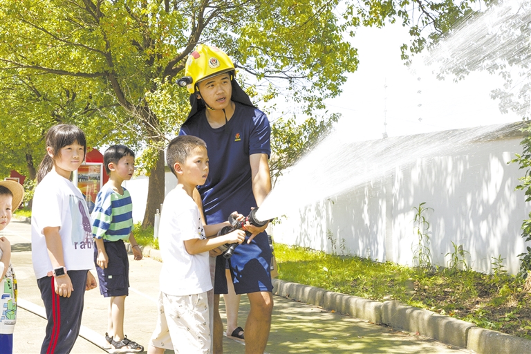 近日,周巷镇20多名小学生及幼儿园儿童在家长陪同下参观了长河消防救援站。消防员为孩子们介绍消防车及各种随车器械,孩子们通过零距离、沉浸式体验,感受消防生活、了解消防知识,学习基本的应急自救和火灾预防常识。 ■摄影 全媒体记者 杨贯 通讯员 张文泽