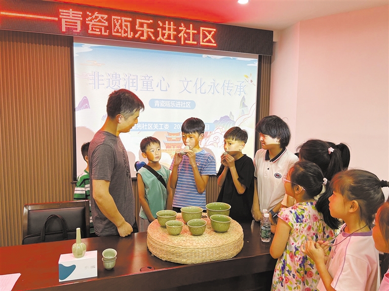 慈晓客户端慈圈“圈友”汇聚微光:市青瓷瓯乐艺术团演员王希利用自己的专业特长为社区暑期假日学校的孩子们带来一堂青瓷瓯乐讲座,感受非遗魅力。