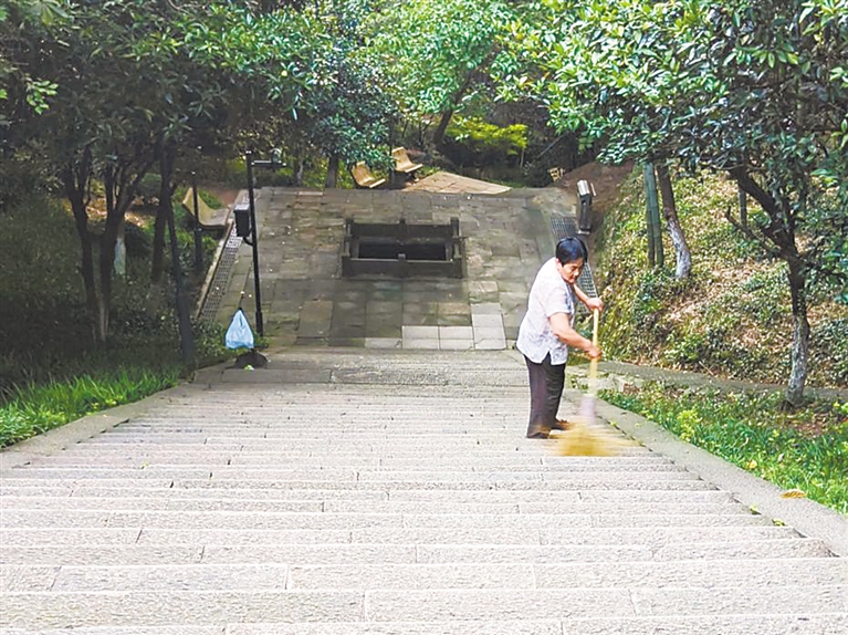 慈晓客户端慈圈“圈友”淡淡的歌:比早锻炼者来得还早的峙山“美容师”。