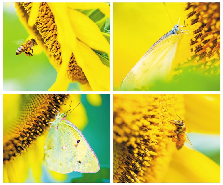 周巷职高校园里的向日葵开花了,远看一片欣欣向荣,近观更是一派繁忙。