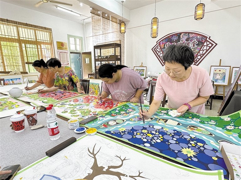 为促进慈溪农民画非遗文化的推广和普及,提升青年美术教师专业水平,近日,市美术家协会农民画艺委会和横河镇综合文化站、妇联联合主办2024“与你夏遇”碧云艺课堂农民画公益培训,来自全市各中小学的美术老师,以及农民画爱好者汇聚朱碧云农民画工作室,认真学习了农民画的表现内容、形式、手法及色彩特点,共同感受农民画的无穷魅力。 ■摄影 全媒体记者 戎志虎 通讯员 胡莉霞