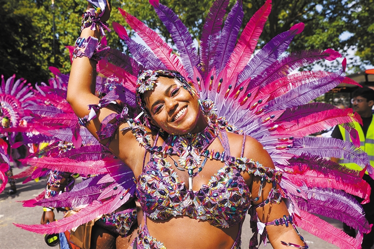8月26日,表演者在英国伦敦参加诺丁山狂欢节。当日,2024诺丁山狂欢节在英国伦敦落幕。 ■新华社发