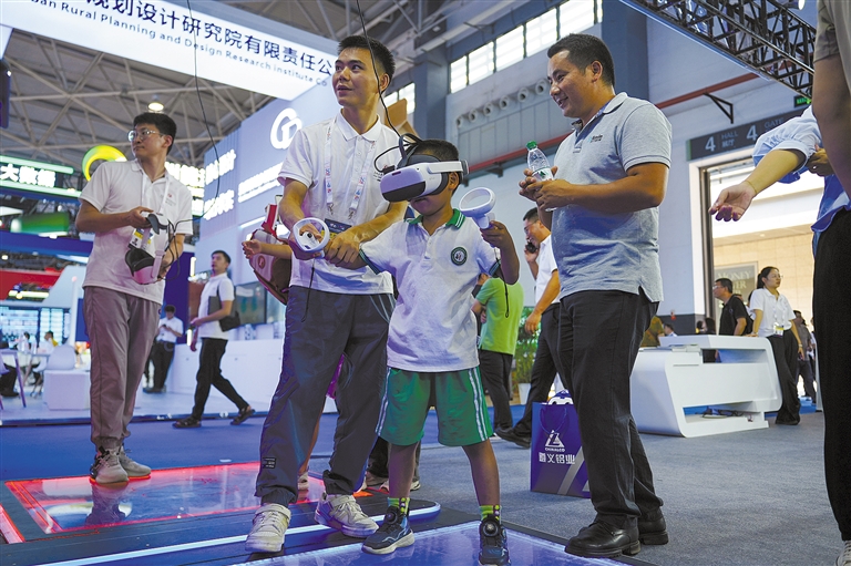 8月28日,在2024中国国际大数据产业博览会上,一名小朋友体验VR项目。