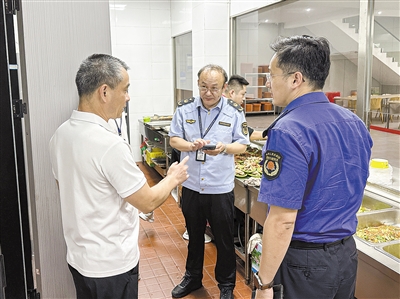昨日,横河镇综合执法、市场监管等多部门联合对辖区学校食堂开展“综合查一次”全面体检,筑牢校园食品安全卫生防线。 ■摄影 全媒体记者 蒋亚军 通讯员 张朝峰