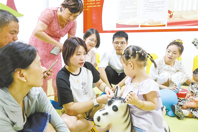 前天,市托育综合服务中心邀请市中医医院治未病科张虹主管护师在坎墩街道沈五村为0-3周岁儿童的家长举办婴幼儿中医保健讲座,手把手教学用中医为婴幼儿增强体质,传授婴幼儿成长中所遇到难题的中医解法。 ■摄影 全媒体记者 蒋亚军 通讯员 岑佳