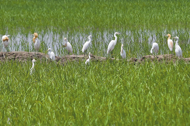 近日,在横河镇一处稻田里,成群结队的白鹭时而低头觅食,时而展翅高飞,为田野增添了几分诗情画意。