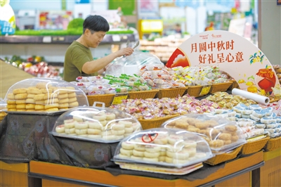 随着中秋临近,我市超市、面包店推出了各种口味的月饼,其中超市以蛋黄、莲蓉、五仁等传统口味为主,面包店则更偏爱流心奶黄、冰皮月饼、水果月饼等。图为市民正在选购月饼。