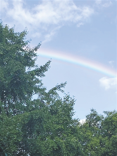 慈晓客户端慈圈“圈友”火箭熊出没:清晨一场雨后,一道彩虹高悬于湛蓝的天空,开心!