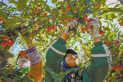 眼下,内蒙古通辽市科尔沁左翼中旗希伯花镇栽植的锦绣海棠果迎来丰收,田间地头一派繁忙景象。果农们忙着采摘锦绣海棠果,工人们忙着挑选装箱,销往各地。近年来,当地大力发展果树经济林,科尔沁左翼中旗锦绣海棠栽植面积已达12.6万亩,挂果面积达3万亩,盛果期亩产量达1000公斤。如今,以锦绣海棠为代表的经济林已成规模,其防风固沙、水土保持等生态效益逐渐显现,农牧民来自经济林的收入也不断增长。 ■新华社发