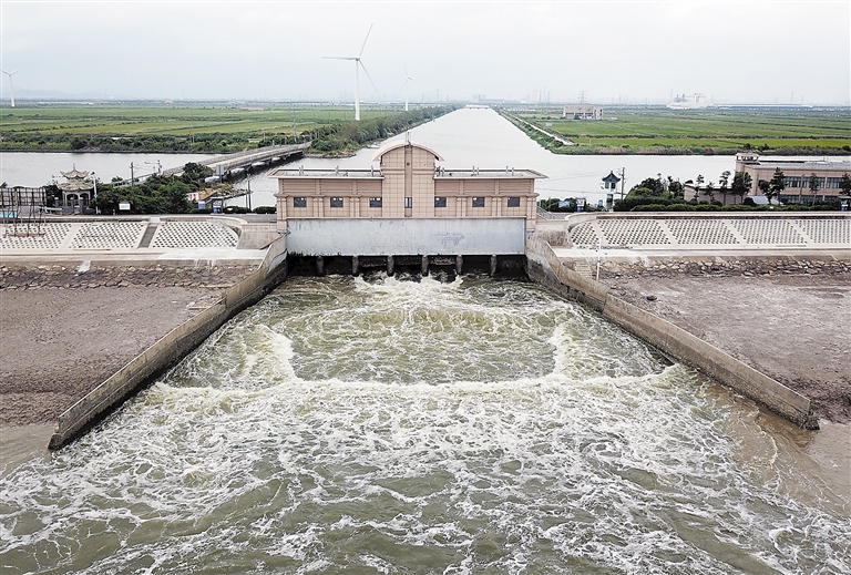 台风“贝碧嘉”刚离境,另一个台风“普拉桑”已生成,为应对台风季,近日半掘浦十一塘闸开闸放水,预降内河水位,确保台汛期间我市安全度汛。 ■摄影 全媒体记者 王烨江 通讯员 潘建谓