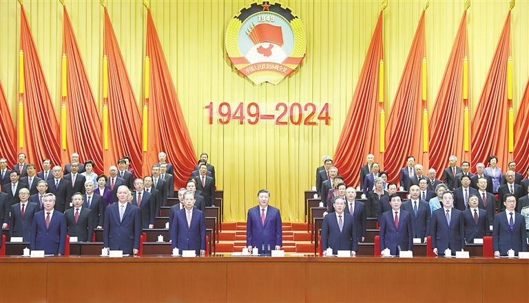 9月20日上午,中共中央、全国政协在全国政协礼堂隆重举行庆祝中国人民政治协商会议成立75周年大会。习近平、李强、赵乐际、王沪宁、蔡奇、丁薛祥、李希、韩正等出席大会。          ■新华社发