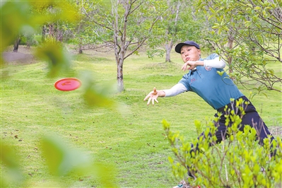 前天,2024宁波市掷准飞盘公开赛(慈溪站)在我市举行。来自全国各地的盘友齐聚森林公园掷准飞盘基地,展开了一场别开生面的较量。图为选手在比赛中。