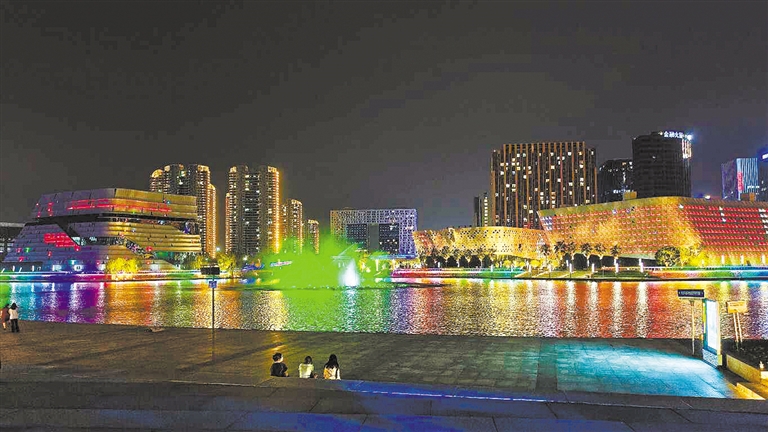 慈晓客户端慈圈“圈友”淡淡的歌:明月湖的夜晚,灯光璀璨。