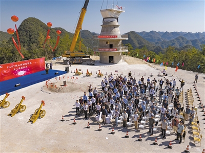 9月25日是“中国天眼”落成启用8周年纪念日。在距离“中国天眼”不到3公里的一处山头上,一台40米级的射电望远镜开始吊装,“中国天眼”核心阵试验样机正式开工建设。