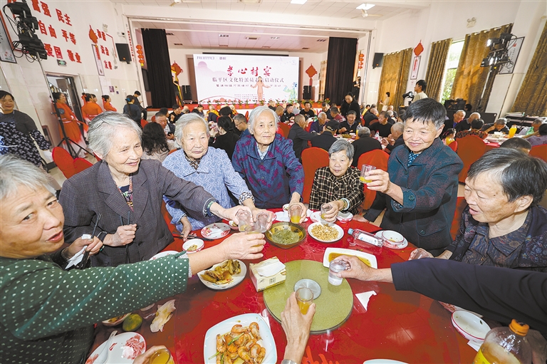 当日,浙江省杭州市临平区文化特派员走亲启动仪式暨塘栖镇河西埭村迎重阳孝心节“孝心村宴”活动在河西埭村文化礼堂举行。村里200多位70周岁以上的老人齐聚一堂,活动现场还有志愿者提供义务理发、量血压等便民服务。