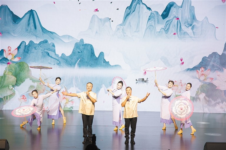 前天下午,由市老龄事业发展基金会、市老龄办、市融媒体中心、市慈善总会主办的“慈溪市夕阳红艺术团‘重阳节’文艺汇演”在慈溪大剧院举行,并同步直播,吸引了线上线下近万观众观看。据悉,“敬老月”期间,夕阳红艺术团还将进社区、下农村、进养老机构,将一场场好戏、一台台优秀节目送给老年群体,进一步丰富老年人文化生活。 ■摄影 通讯员 马诗雨