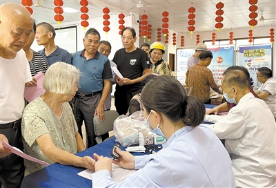 近日,宗汉街道曙光社区利用群治分“点单”模式,携手慈溪市蓝十字脑科医院,为社区居民免费开展颈动脉B超、血糖检测及健康咨询等服务,让居民在家门口享受到高质量的医疗服务。 ■摄影 全媒体记者 王烨江 通讯员 黄佳慧