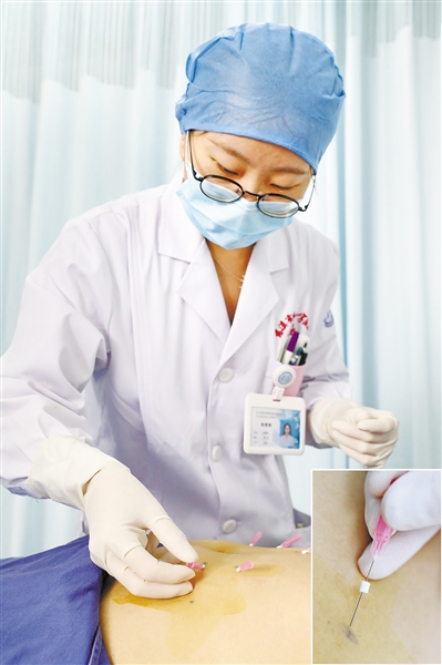 近日,市中西医结合医疗健康集团红十字院区康复科医生正在为一名肥胖患者进行穴位埋线减肥治疗。穴位埋线疗法是中医针灸技术的延伸,通过特制的针具将可吸收线,植入到特定的穴位,通过长久、持续、温和的穴位刺激,达到疏通经络,调和气血,平衡阴阳,调整脏腑,达到治疗目的。 ■摄影 全媒体记者 王烨江 通讯员 徐吉芳