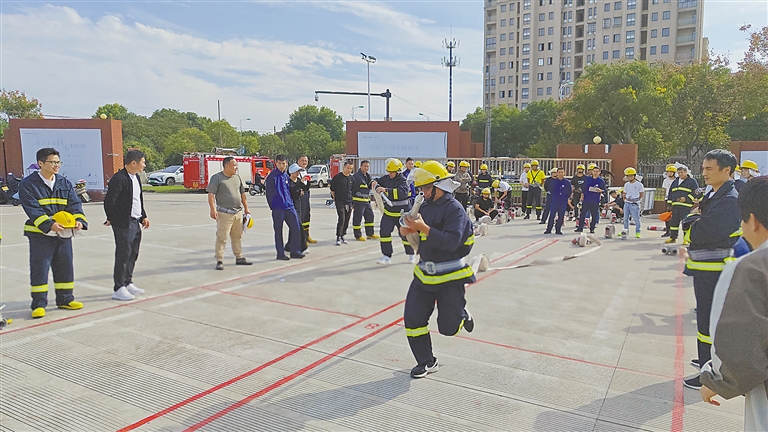 日前,坎墩街道举行2024年度“祈禧杯”微型消防站业务技能比武。通过60米油桶灭火操、一人二带连接操、手抬机动泵出水操等项目比武,进一步检验微型消防站队员们的消防应急能力。 ■摄影 全媒体记者 景锦 通讯员 陈立锋
