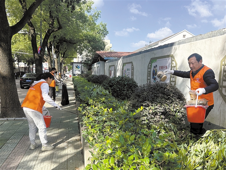 前天上午,市爱心壹加壹志愿者协会开展“美丽慈溪·你我共建”环保活动。志愿者们沿着吉祥路周边捡拾塑料袋、废纸片、易拉罐等垃圾杂物,清理小广告,并对沿路不规范停放非机动车行为进行规劝,共同营造整洁美丽环境。