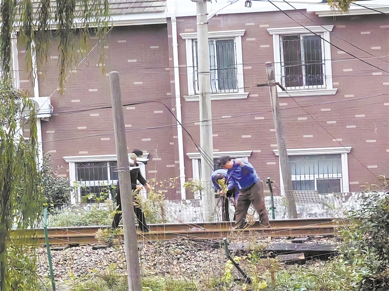 慈晓客户端“慈圈”圈友风儿:大清早修枕木的铁路工人。