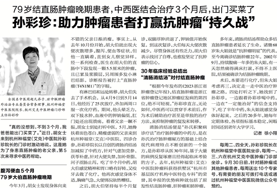 “根据今年发布的《2023浙江省肿瘤登记年报》,结直肠肿瘤是浙江省肿瘤登记地区肿瘤症发病的第四位,绝不可轻视。”孙彩珍直言,无论如何,中医药可以贯穿手术前后,作为术后辅助治疗甚至是单独的治疗方法,来抑制肿瘤的复发和转移。