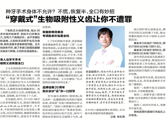 浙江照护者公益基金会,携手杭州科瓦齿科旗下4院,推出普惠杭城的半/全口吸附义齿补助活动: