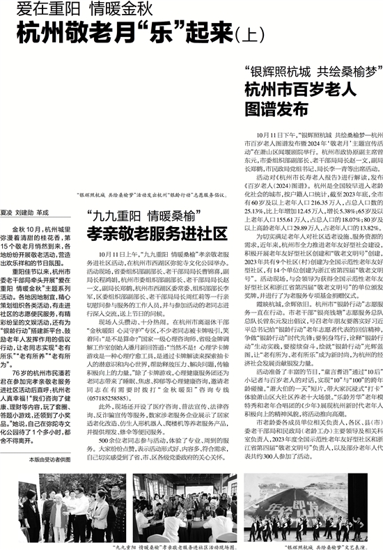 金秋10月,杭州城里弥漫着清甜的桂花香,第15个敬老月悄然到来,各地纷纷开展敬老活动,营造出欢乐祥和的节日氛围。