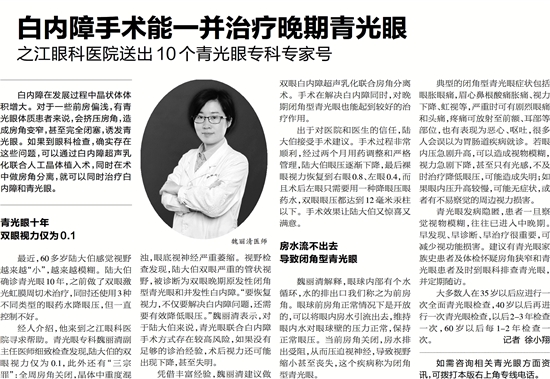 如需咨询相关青光眼方面资讯,可拨打本版右上角专线电话。
