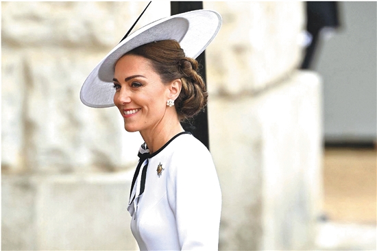 6月15日,在英国伦敦,凯特王妃到达阅兵式现场。这是自她确诊癌症并进行手术治疗以来首次公开露面。