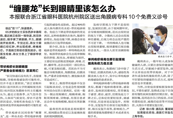 本报联合浙江省眼科医院杭州院区送出角膜病专科10个免费义诊号