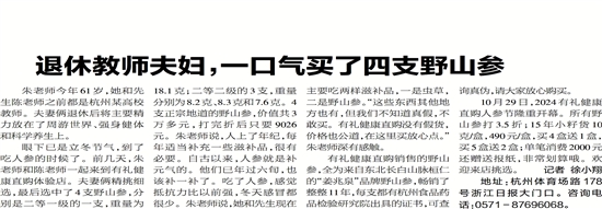 10月29日,2024有礼健康直购人参节隆重开幕。所有野山参打3.5折;15年小籽货10克/盒,490元/盒,买4盒送1盒,买5盒送2盒;单笔消费2000元还赠送报纸,非常划算哦。欢迎来店挑选。 记者 徐小翔