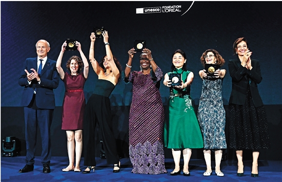 2024年度“欧莱雅-联合国教科文组织世界杰出女科学家奖”(“世界杰出女科学家奖”)颁奖典礼28日在位于法国巴黎的联合国教科文组织总部举办。中国科学家颜宁等5位科学家获颁本年度这一奖项,以表彰她们在生命与环境科学领域的卓越贡献。 新华社发 朱利安·马蒂亚摄