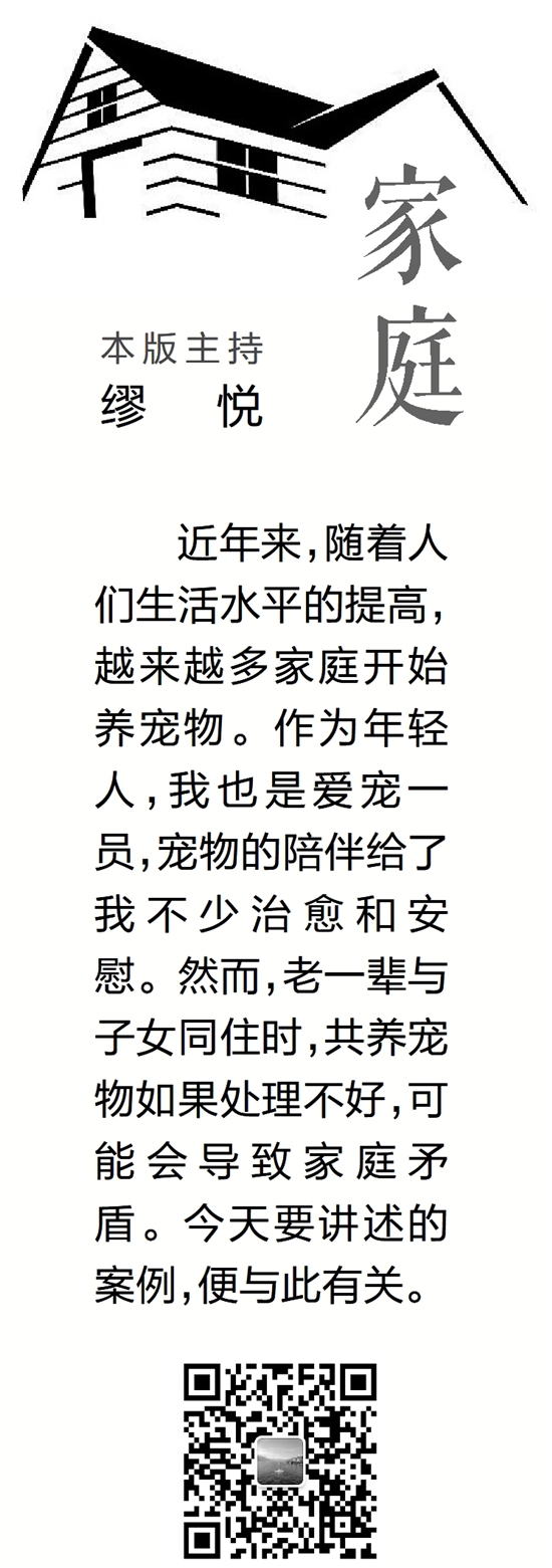 近年来,随着人们生活水平的提高,越来越多家庭开始养宠物。作为年轻人,我也是爱宠一员,宠物的陪伴给了我不少治愈和安慰。然而,老一辈与子女同住时,共养宠物如果处理不好,可能会导致家庭矛盾。今天要讲述的案例,便与此有关。