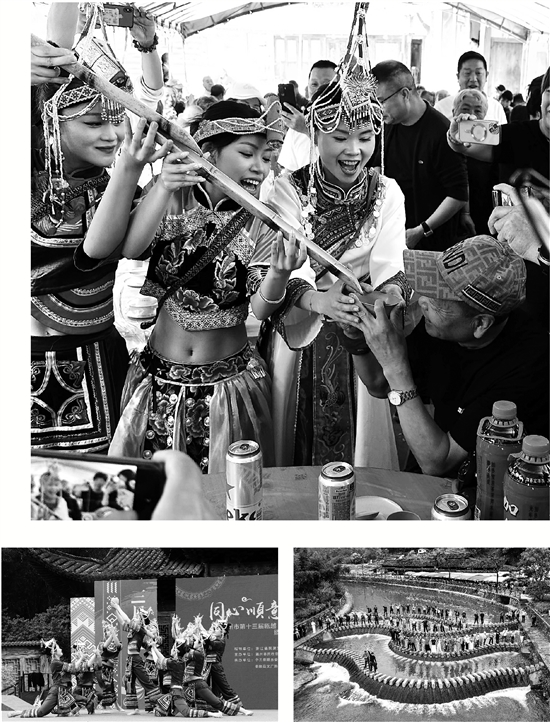 今年畲乡竹里的“三月三”活动丰富多彩,全方位展现畲乡的歌舞、饮食、民俗(服饰)等民族乡村旅游文化形态,有绚丽的民族服饰,别样的畲族节庆,还可以现场品尝畲乡乌饭宴,欣赏畲族婚嫁表演,体验畲族民俗运动等特色活动。老干部摄影师们沉浸式体验畲乡民俗风情,感受畲族文化魅力,用镜头记录畲乡美景和乡土人情。