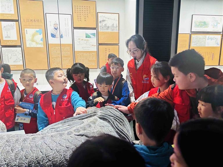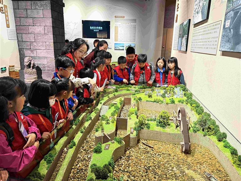 走进“水利千秋展区”,时间仿佛在此刻静止,却又在无声中诉说着岁月的缓缓流淌。小记者们静心聆听,从中国早期、中期到近代及当代的水利盛况一一呈现眼前。那一段段波澜壮阔的治水历程,是中华民族五千年智慧的结晶,见证了无数治水人的辛勤付出与伟大成就。小记者们凝神思考,小声交流,在历史的回响中汲取着力量。