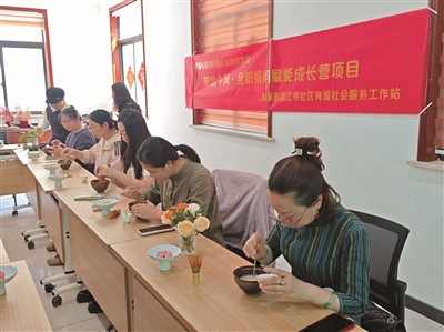 本报讯(记者 朱林飞 通讯员 俞翼)春日迟迟,茶烟袅袅。近日,城厢街道江寺社区全职妈妈成长营项目特别策划了“宋韵四雅”之茶艺雅集。在国家高级评茶师、国家高级技师郭霞老师的带领下,社区全职妈妈们透过一盏清茶穿越千年,触摸宋代文人的风雅日常。