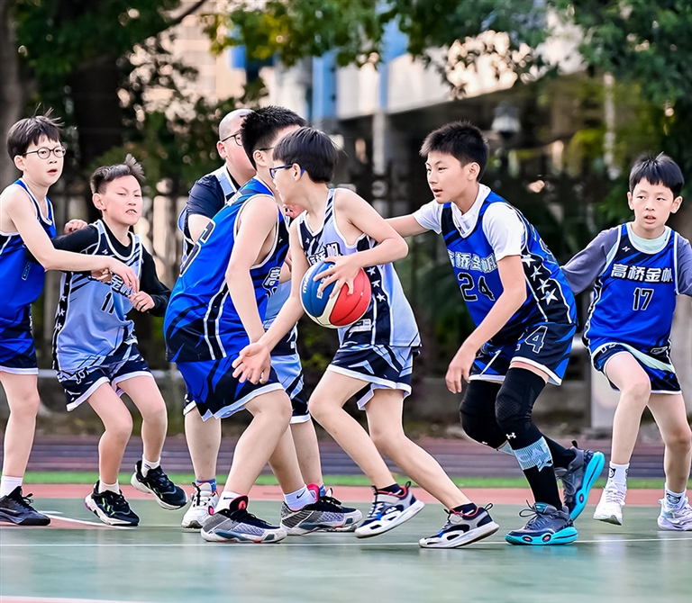 近年来,高桥金帆实验学校已累计为6000多名学生提供精彩的篮球运动体验。学校对应“雅行、雅学、雅趣”的校训,持续创新内容与形式,提升学生的运动能力、健康行为和体育品德。