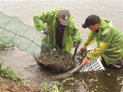 本报讯(文/记者 何可人 李霖达 通讯员 周介媛 摄/记者 何可人)沉下虾笼、撒上饲料,静待20分钟左右,提绳收笼——刹那间,密密麻麻的虾儿噼啪弹射,激起阵阵水花……