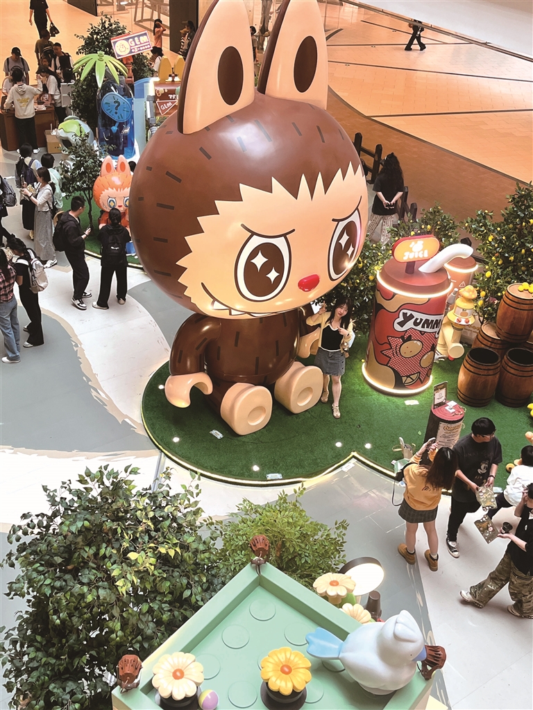 今年刚30岁的陈烨则表示,自己是被妹妹“拖入坑”的,“作为一名钢铁直男,我已经能精准地认出Jellycat、labubu、邦尼兔等爆火IP了。”前几天,全国首个labubu奇幻乐园“空降”嘉里中心,他还特意过去和5米高的labubu合了影。