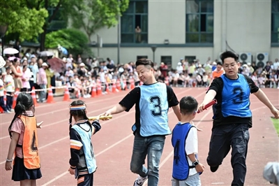 新街小学的绿茵场上,一、二年级的萌娃和家长化身“超能搭档”,接力上演“爱的马拉松”。小手拉大手的交接瞬间,传递的不只是接力棒,更是亲子间的默契与信任。