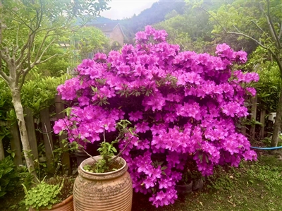 后来偶然得知,这叫西洋杜鹃,是从遥远的国度漂洋过海而来的。与山间野生的土杜鹃不同,它的红更艳丽,花瓣更厚实,开起来也更为放纵。自那以后,我日思夜想,总盼着也能拥有一株。可那时节,城里连个像样的花市都没有,更不必说网购了。况且养花的人也不多。