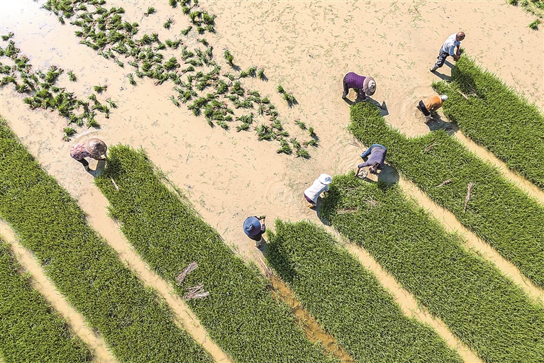 初夏时节,各地农民抢抓农时,开展种植、管护等农事活动,田间一派繁忙景象。