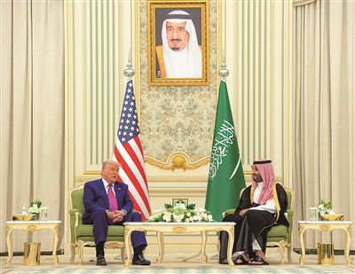美国白宫13日发布声明说,美国和沙特阿拉伯当天签署价值近1420亿美元的军售协议。声明说,美国与沙特签署的这项协议为“史上最大军售协议”,该协议是沙特同意向美投资6000亿美元一揽子协议的一部分。 图为5月13日,在沙特阿拉伯利雅得,沙特王储穆罕默德·本·萨勒曼(右)会见美国总统特朗普。