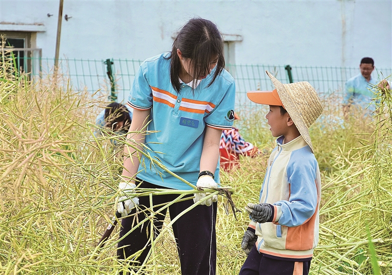 近日,萧山八中的同学们和瓜沥二幼花田幼儿园的小朋友们走进劳动基地,一起挥锄翻土,体验农耕之趣,感受劳动之美,在实践中增进跨学段交流。