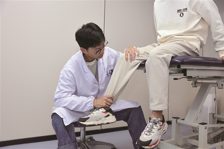 医院康复科康复技师韩梦瑶说:“因为运动损伤来治疗的年轻人不在少数,有的患者是打球受伤的,也有的是在健身过程中扭到的,像手腕、脚踝、膝盖等部位受伤最为常见。前几年来就诊的患者以中老年人为主,现在年轻化趋势越来越明显。”