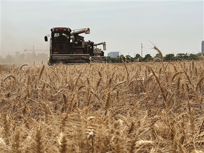 本报讯(记者 何可人 李霖达)初夏时节,麦浪翻滚,城市CBD中的2900亩麦田世纪田园迎来了收获季。这一城市与田园交织的景象位于我区盈丰街道。在区供销联社的专业托管服务下,金黄色的麦穗颗粒饱满,随风摇曳,勾勒出一幅产业兴旺、乡村振兴的美丽画卷。